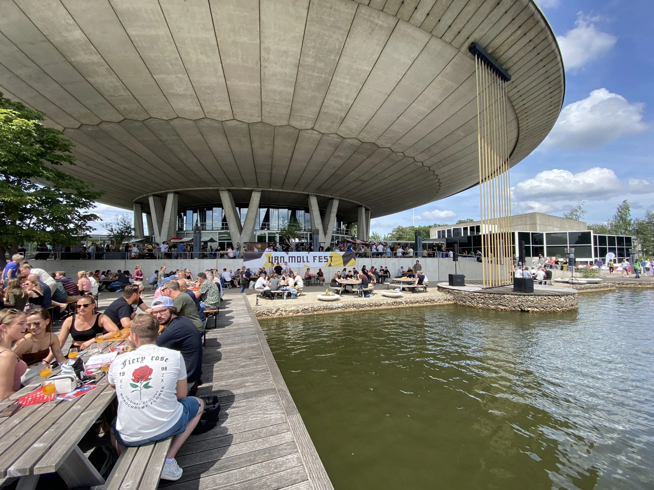 Eén van de betere dus, Van Moll Fest staat wat ons betreft sowieso in de (aller)bovenste regionen. De locatie is iconisch: Evoluon in Eindhoven, een gigantische vliegende schotel met een ruime tuin daaromheen. Dat laatste maakt het ideaal voor een bierfestival in zomerse sferen. De organisatie is tip-top, zo is er goed eten en ruim genoeg schaduwplekken, deels onder de schotel natuurlijk, maar ook op het ruime grasveld bak je niet kapot vanwege de tenten en schaduwdoeken die zijn geplaatst. Allemaal randzaken natuurlijk, maar wel hele belangrijke die de beleving van de hoofdzaak zoveel prettiger maakt.
